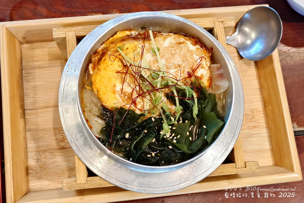 這碗 辣味噌豬肉茶麵 $240元 是我媽媽點的,裡面有海帶、豬肉片和荷包蛋,辣味噌湯頭喝起來頗辣,放涼後辣度更明顯,呵,茶麵很特別,吃起來 Q 彈且帶有淡淡茶香,即使泡久了麵體也不會軟爛,是在 耕讀園市政店 用餐的特色料理之一