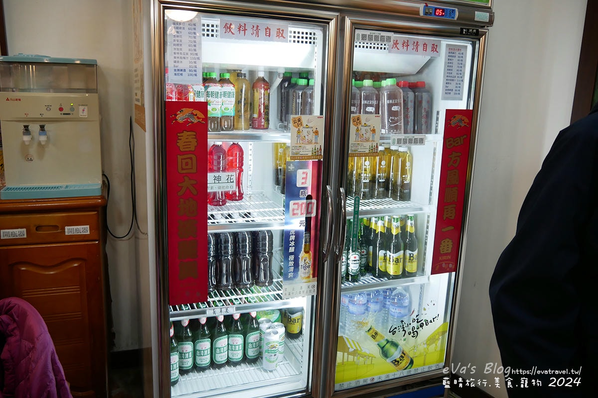 米巴奈山地美食坊店內設有飲料自取區,提供綠茶、冷泡茶、啤酒,以及台東在地特色的自製洛神花飲品,選擇多樣,遊客若有需要可自行取用,記得結帳時一併付款即可