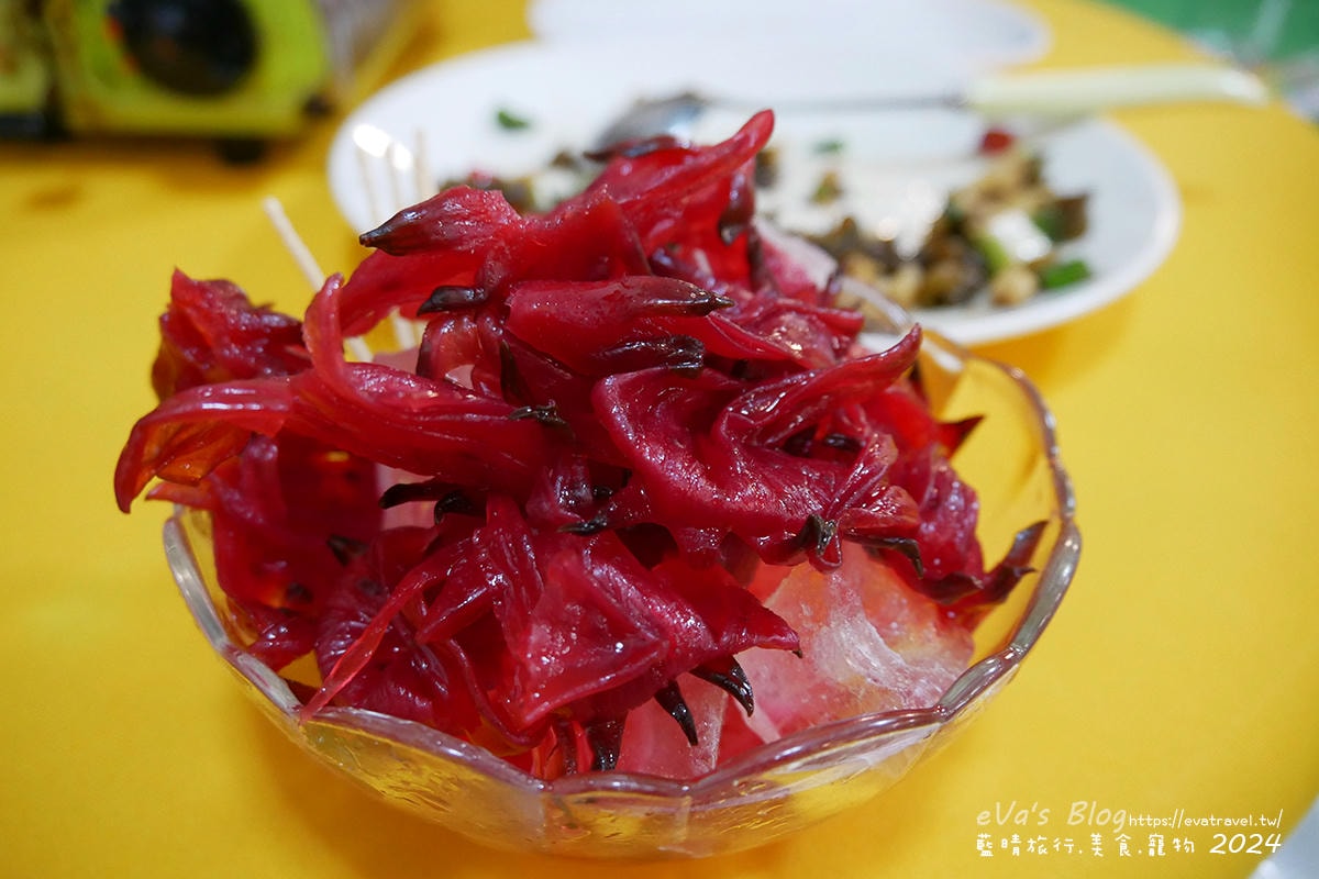 米巴奈山地美食坊的 洛神花蜜餞 是店家自製甜點,冰過後風味更佳,口感冰涼脆爽,酸甜適中,非常 解膩又爽口,這道甜點不僅作為餐後完美收尾,也展現了 台東原住民料理 的創意與特色,非常推薦給喜愛 台東美食 的旅人品嚐