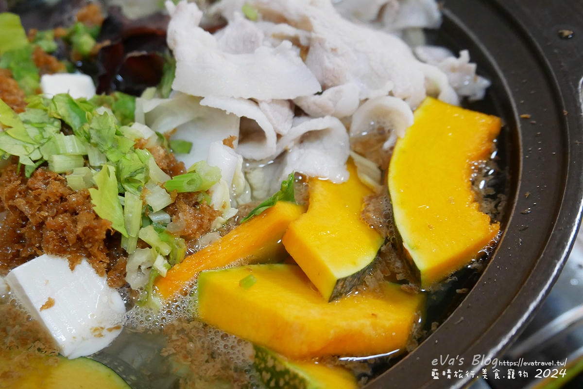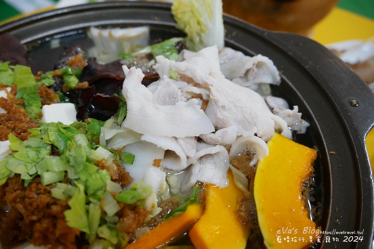 這道 炸蛋肉片湯 是米巴奈山地美食坊的人氣湯品之一,滿滿一鍋好料,包括 豆腐、南瓜、豬肉片、木耳、香菇、大白菜,還有特別的 蛋酥,香脆可口,增加整體風味,湯頭清甜爽口,十分下飯,適合喜歡 台東原住民料理 的朋友品嘗,如果偏好重口味,也可讓湯頭稍煮一下,更能釋放鹹香味道