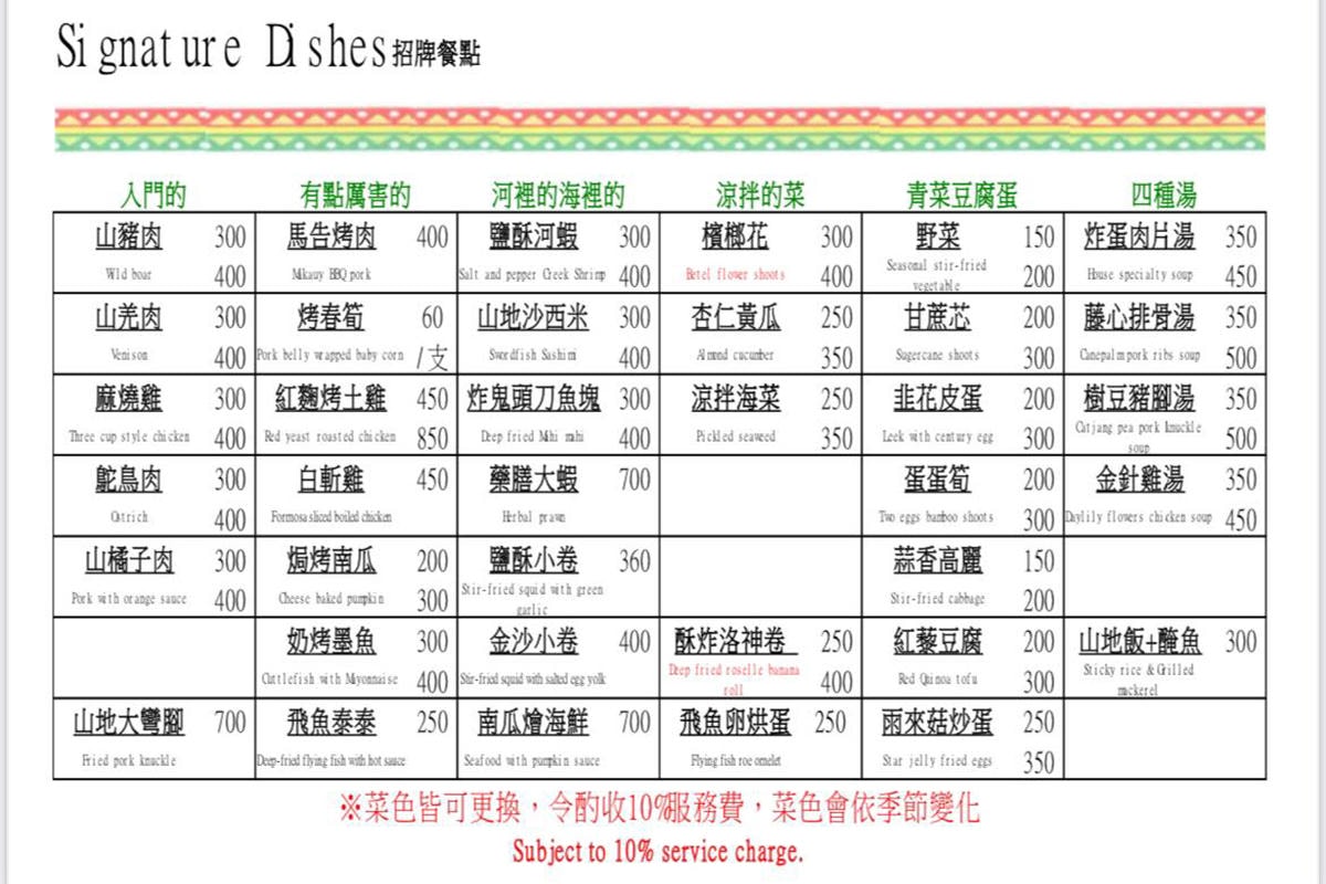 雖然我們這次是113年過年時來用餐,但後來在米巴奈山地美食坊官方粉絲團看到 114年更新的新菜單,整理如下提供給大家參考: